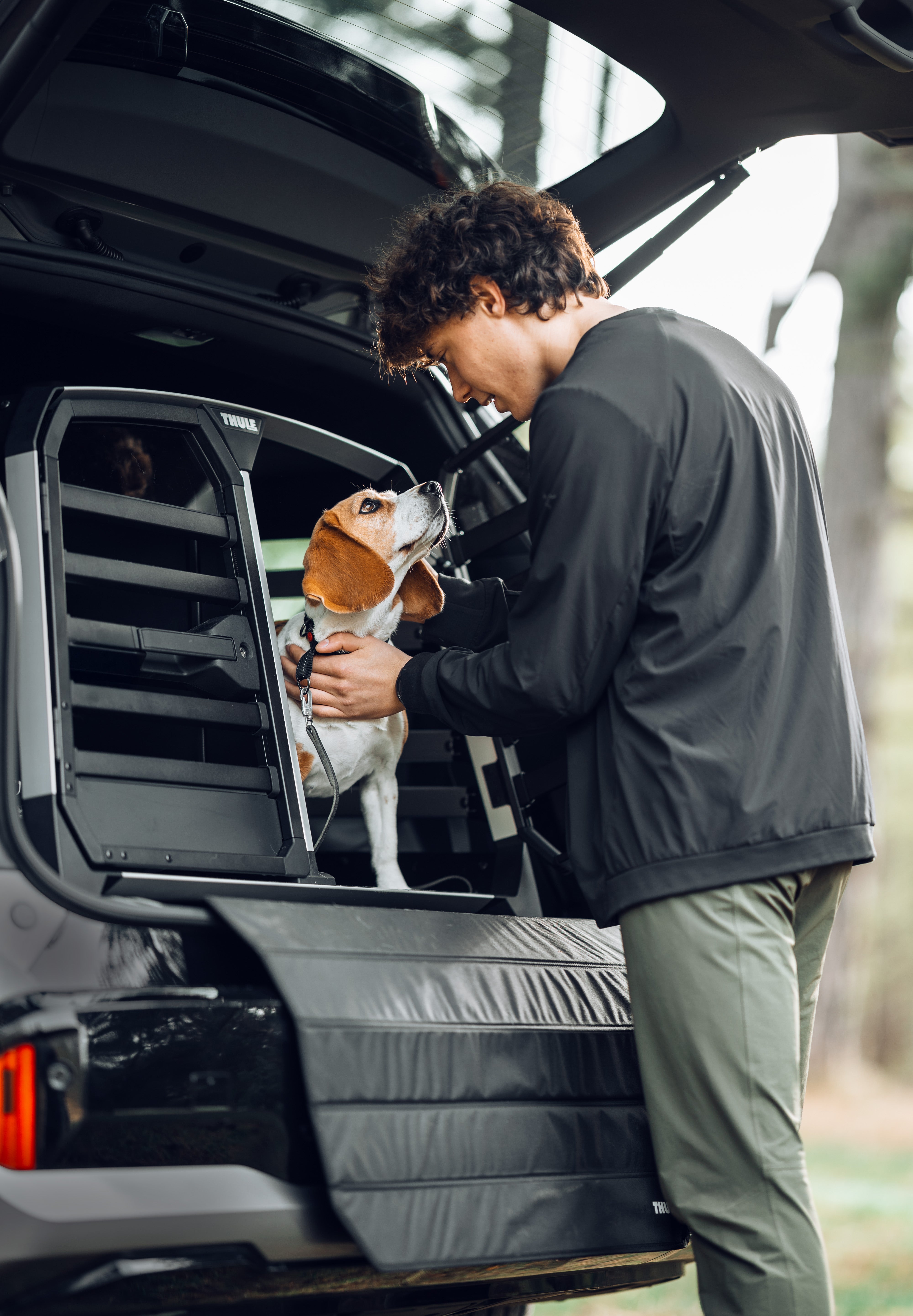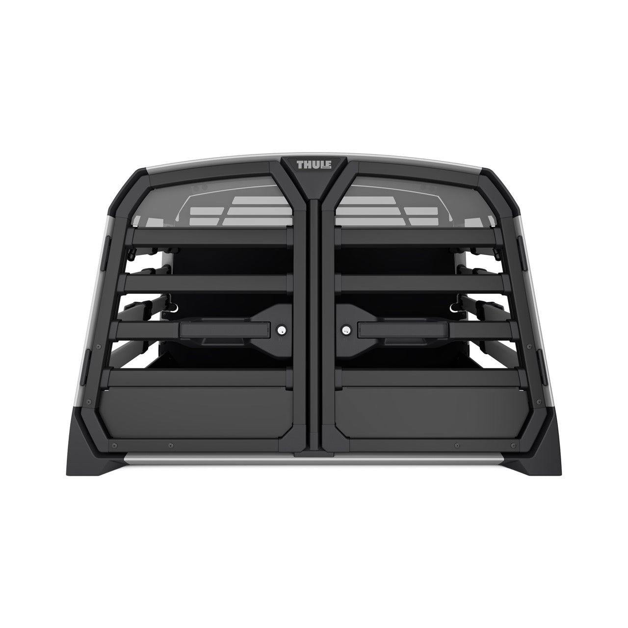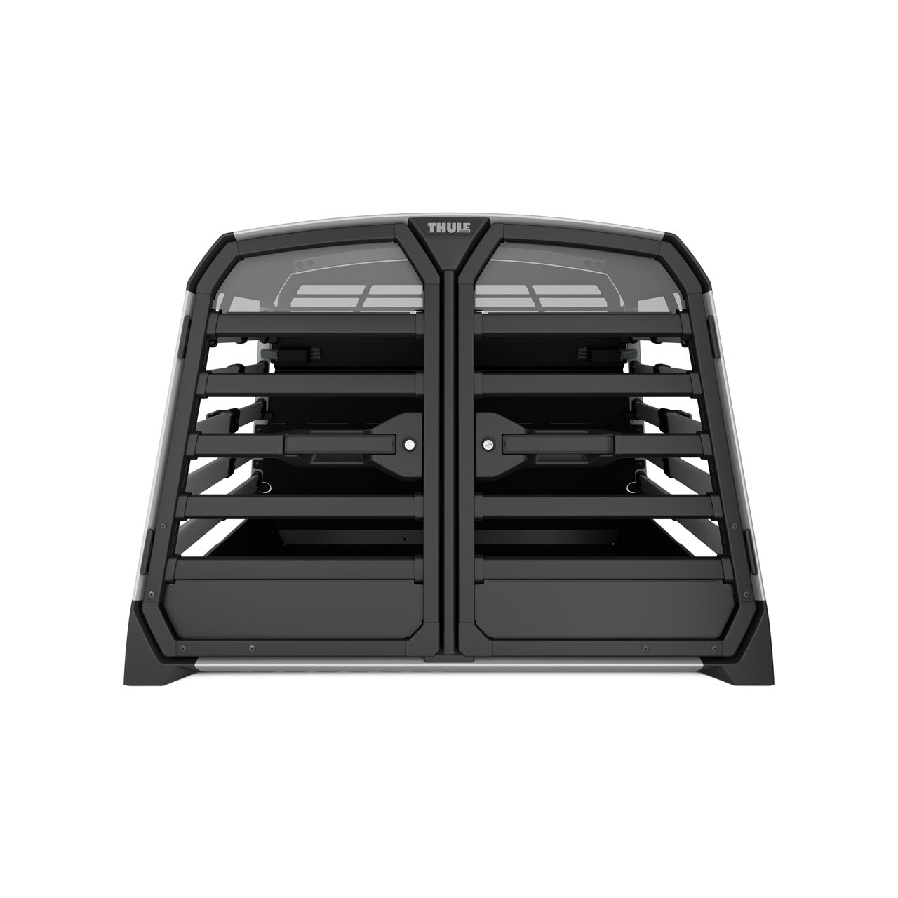 The Thule Allax double dog crate is the perfect choice for safe and comfortable car rides with your four-legged friends. Designed for flexibility, it can be used for two dogs or converted into a spacious crate for one larger dog by removing the parting wall. The adjustable wall can also be angled to create more space on one side, making it ideal for dogs of different sizes. Thoroughly crash tested in our own Thule Test Centre and certified by TÜV SÜD, it features an innovative crumple zone for superior protection. The gas-dampened door opens and closes softly, and the built-in lock adds extra security.