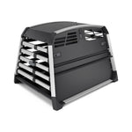 The safe, reliable, and easy-to-use dog car crate that protects both dogs and people. Fits up to two dogs.