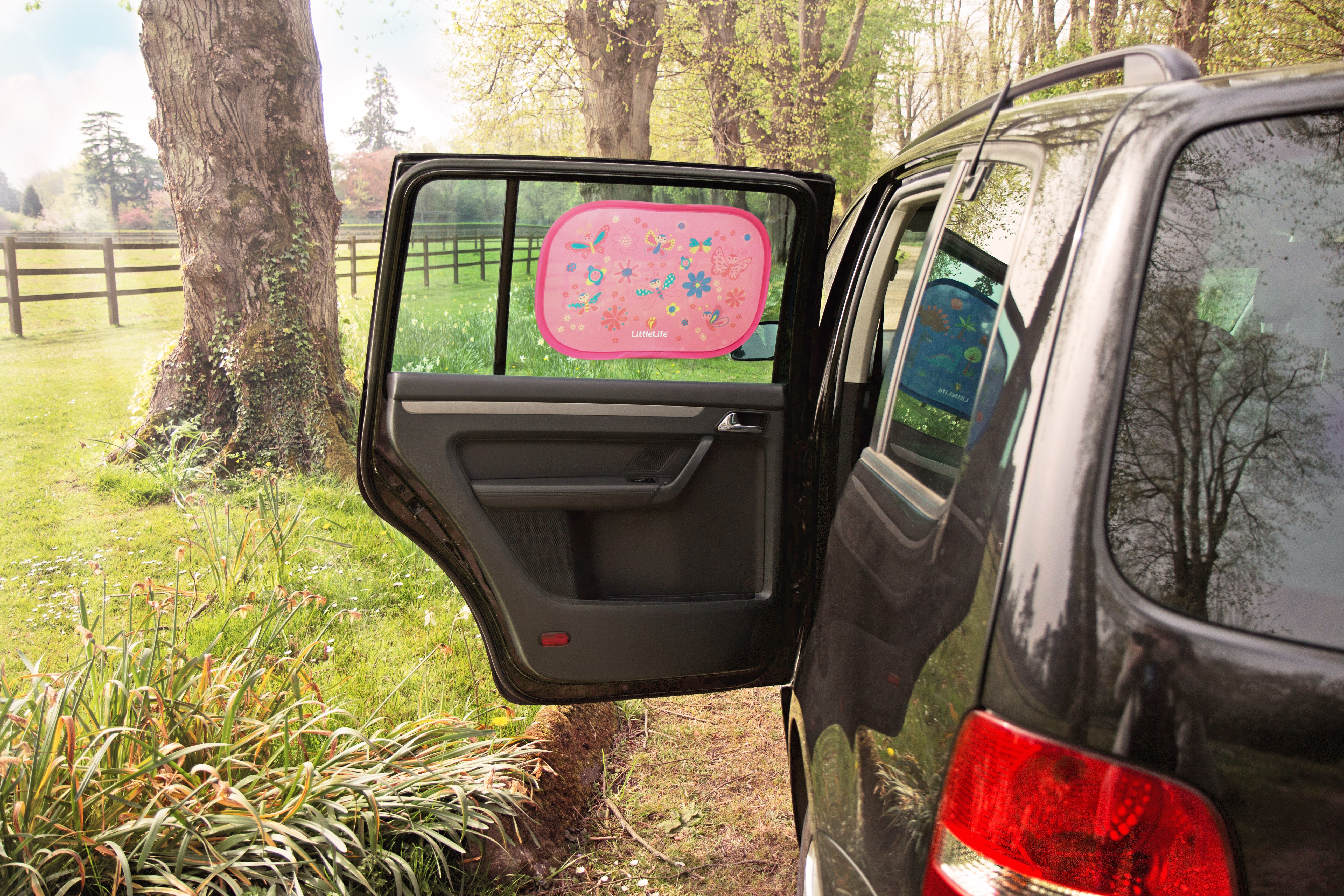 Keep the sun's glare out of little faces with this pair of easy-to-fit car window sun shades which simply static cling to the interior of the window so can be put up in a jiffy. Little ones will still be able to see the world go by in between choruses of 'are we nearly there yet' and when not in use the universal fit sun shades can be cleaned and folded down for compact storage.