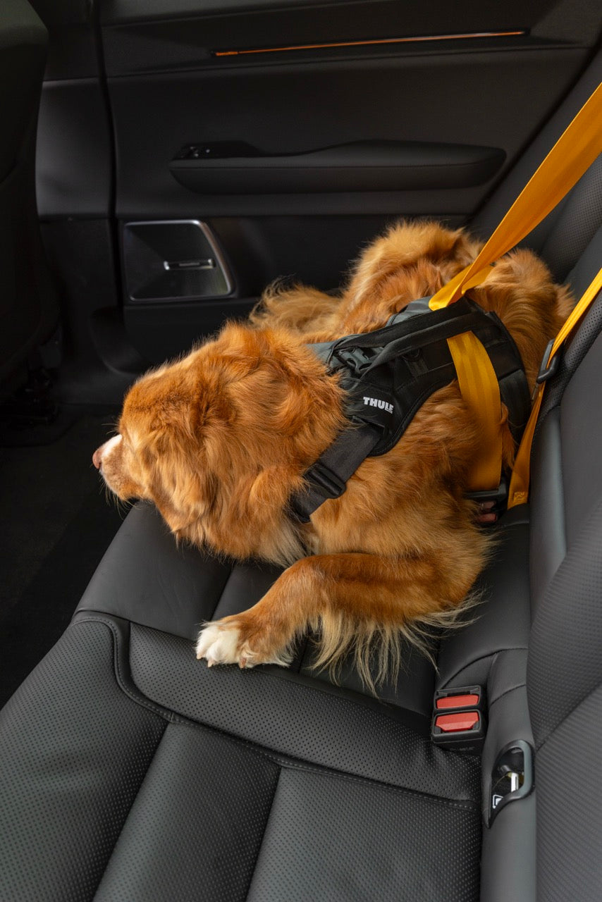 Our crash-tested dog car harness is designed to keep your dog secure in the backseat, providing peace of mind for all passengers on every ride. Built to withstand the forces of sudden stops or collisions, it offers reliable protection by securing your dog with the car's seatbelt system. Unlike tethers or extenders, this harness design keeps your dog close to the seatbelt, preventing forward movement that could endanger other passengers in an accident. In some regions, laws even require restraining pets for the safety of everyone in the vehicle, making this harness essential for responsible travel.