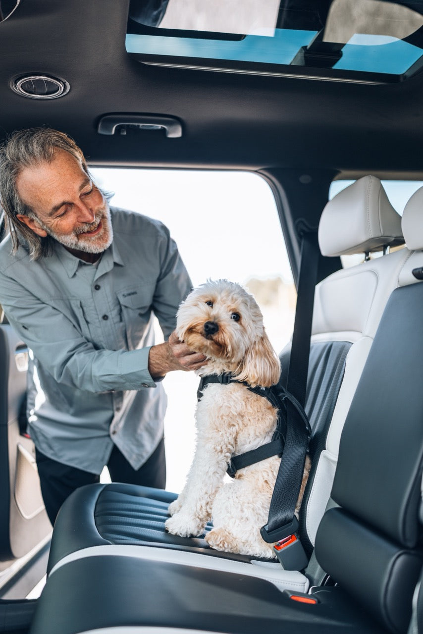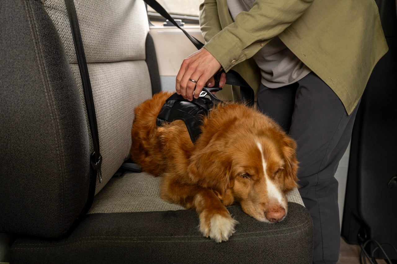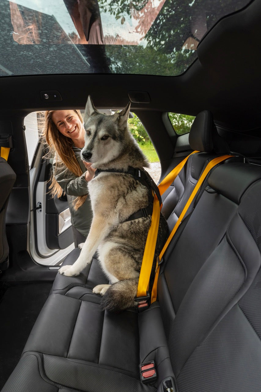 Crash-tested dog car harness designed to keep both your dog and passengers safe by securing your pet in the backseat.