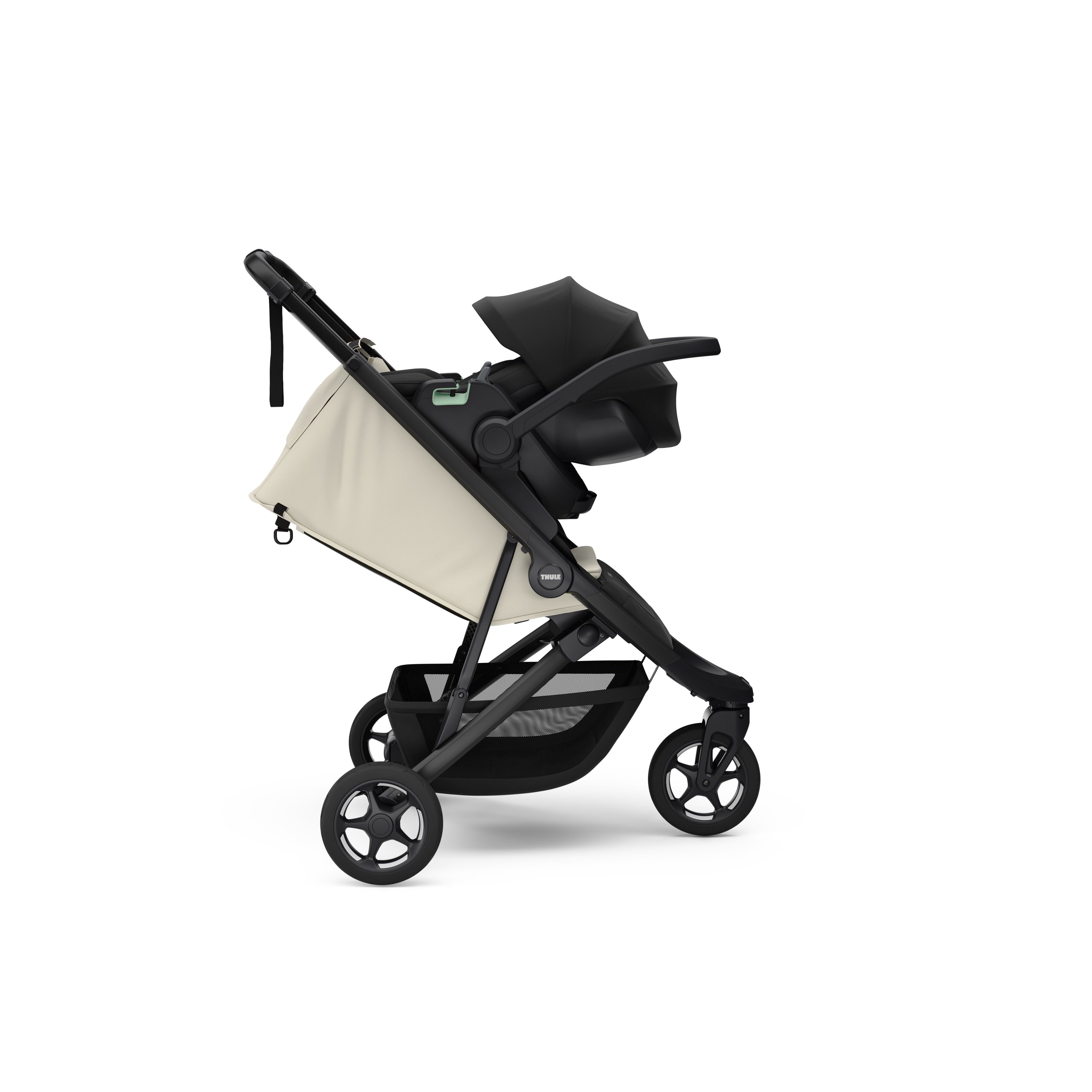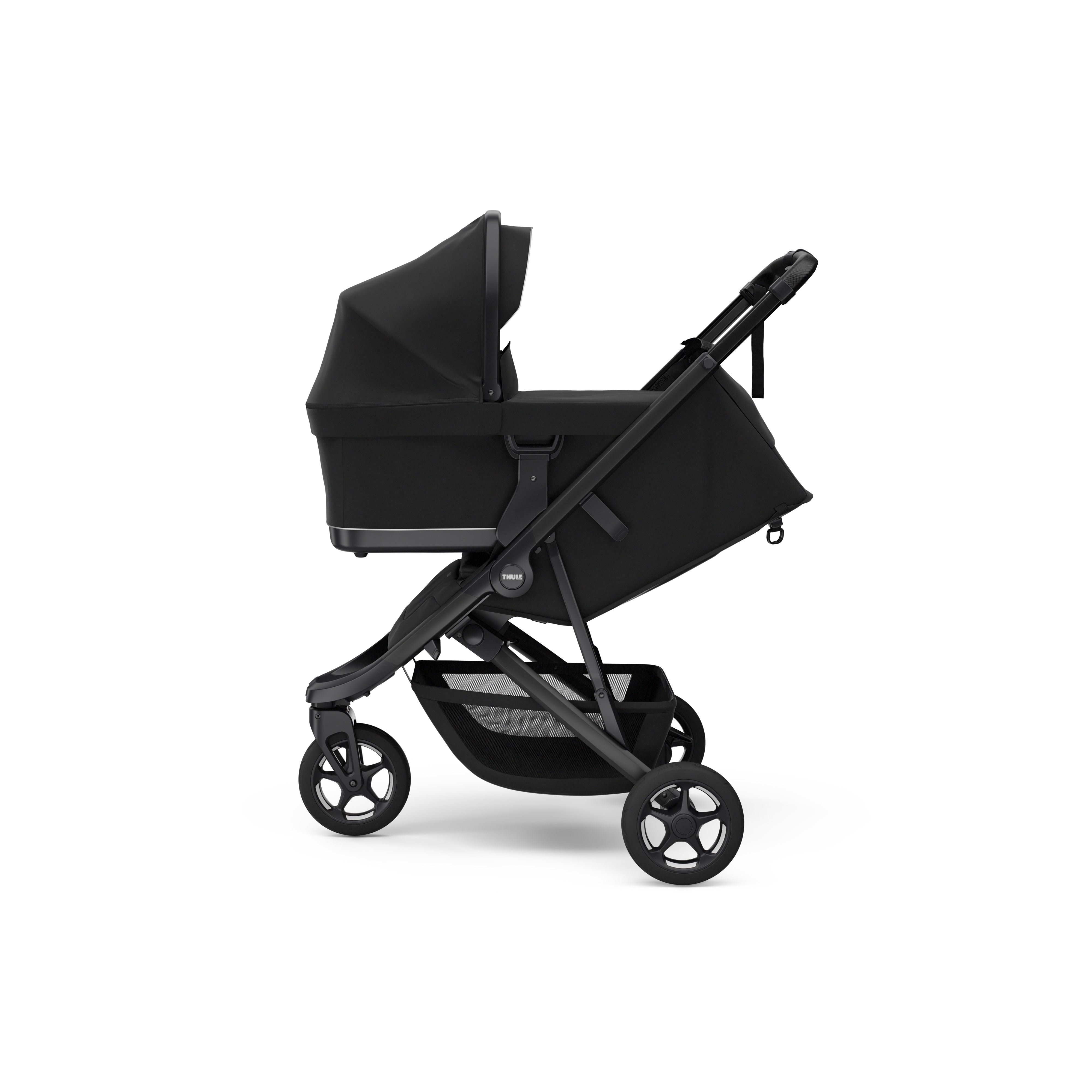 Now with added compatibility for the Thule bassinet, using a bassinet adapter (not available in Canada), Thule Spring 2 lets you enjoy the best of two worlds. Get the versatility of a compact stroller combined with the comfort of a full-sized bassinet. This added compatibility makes Thule Spring 2 the perfect travel companion—easy strolling with a small footprint while giving your newborn a protected and cosy place to sleep on the go.