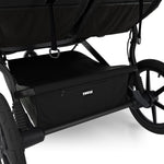 The double pushchair is not only practical. It is designed with a one-handed, compact fold, making storage and transportation a breeze. The full coverage canopy with ventilation provides comfort for your children no matter what the day holds. Equipped with premium features like air-filled tyres and a spacious cargo capacity, this all-terrain double pushchair is the perfect companion for you and your growing family.