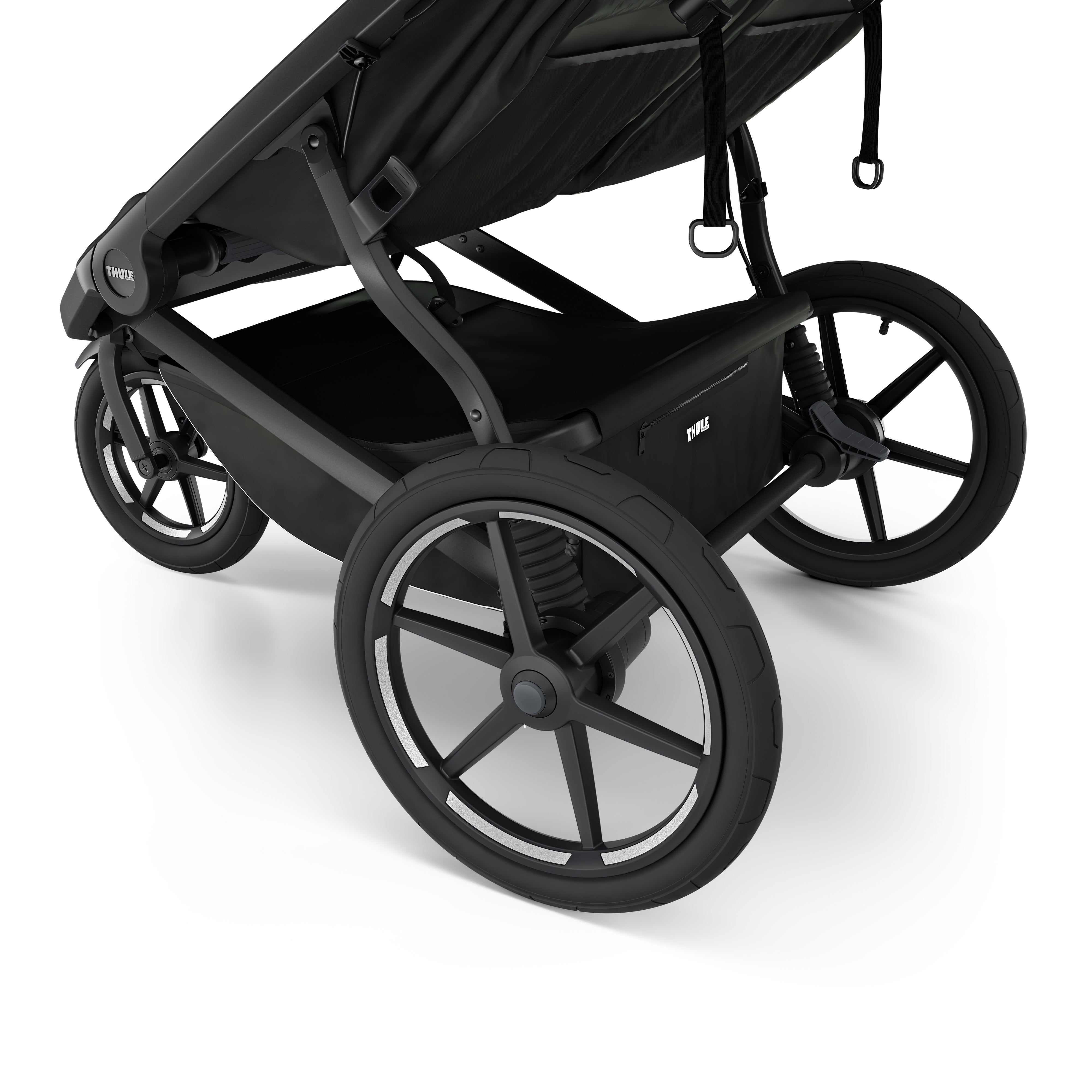 The Thule Urban Glide 3 double pushchair doesn't compromise on comfort or manoeuvrability. Each seat provides a cosy and secure space for your children, and the pushchair's sleek and lightweight design, combined with large wheels and a suspension system, guarantees a smooth and comfortable ride on any surface. Whether you're strolling through bustling city streets or conquering rough terrains, this all-terrain double pushchair delivers great manoeuvrability and performance.
