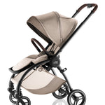 Choose the optional carrycot for maximum comfort, or go with the ergonomic seat unit - each gives your baby total support. Keep them cool with extra airflow using the ventilation windows and safe from the sun with the large canopy. Naptime? Tilt the seat to lie fully flat, and upgrade to the LUX option to add a seat liner with extra padding. What's more? Always give your little one a smooth ride across cobbled squares with the RIO's all-wheel suspension and puncture-free tyres.