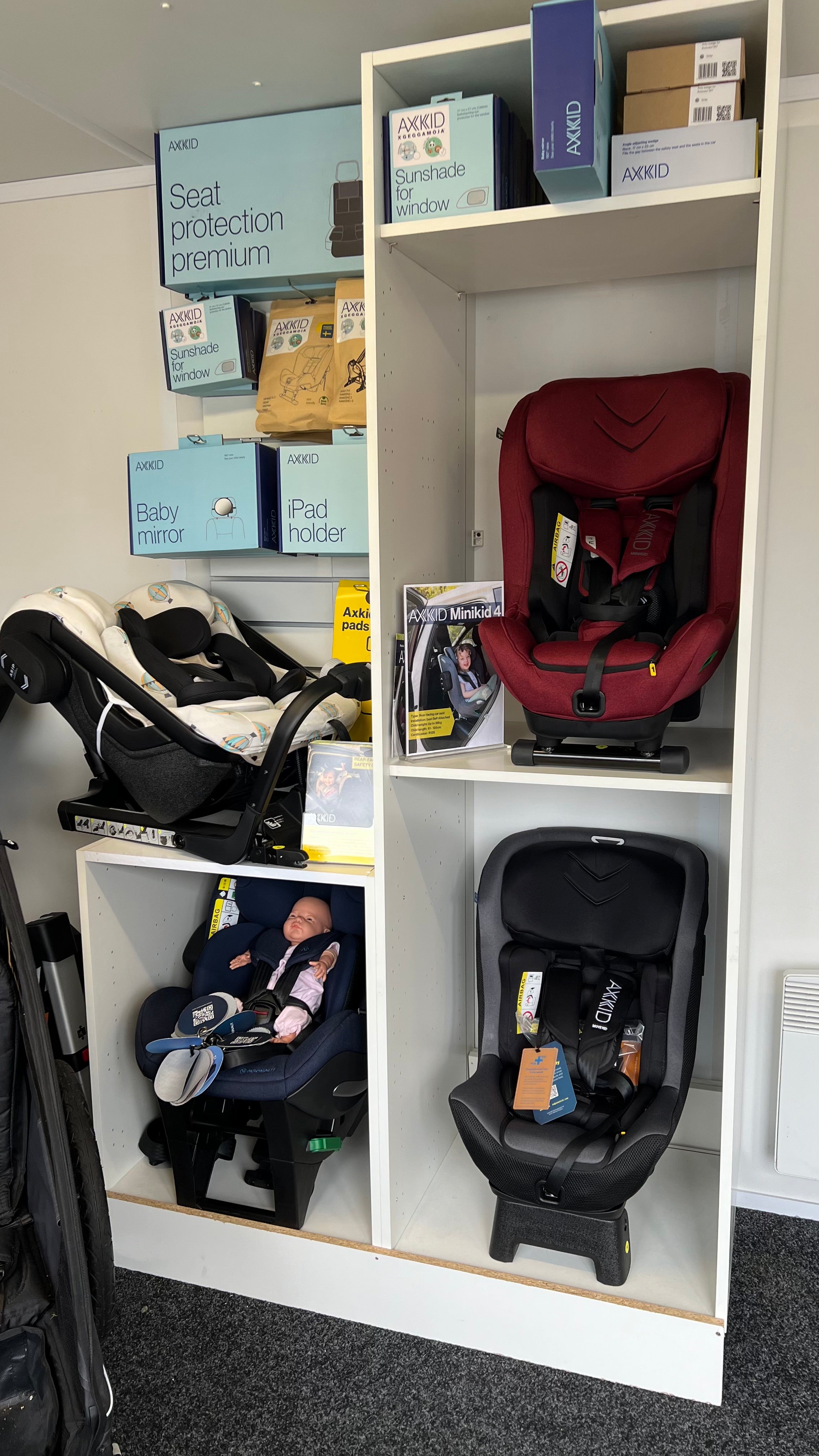 It wasn't practical for me with twins to travel hours away to view the car seats, as I had researched them thoroughly I was confident in ordering Axkid Minikid's online and installing them myself. If I had followed local retailers advice my twins wouldn't be as safe in the car as I know they are now, so I decided to train in car seat safety and start Car Seats Plus!