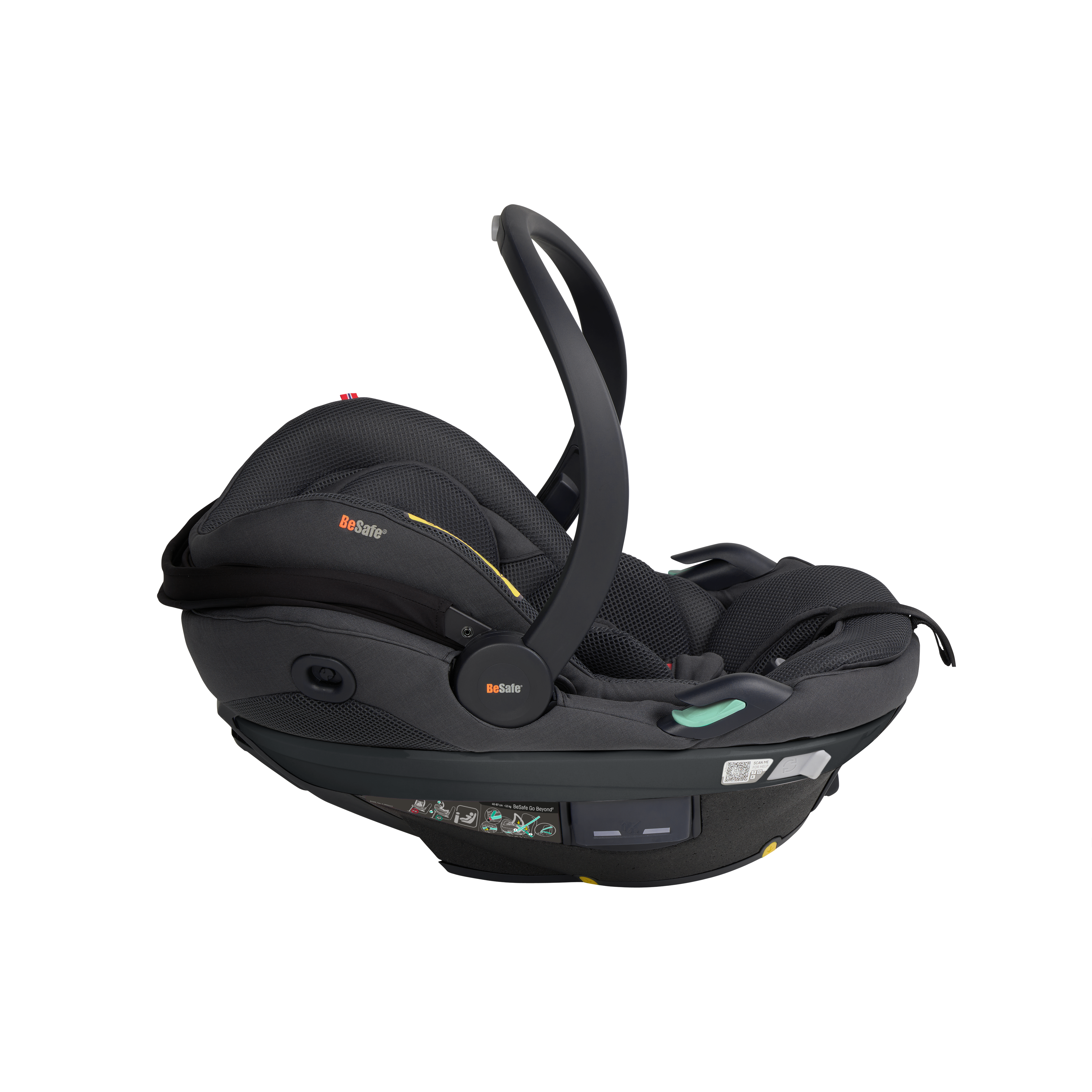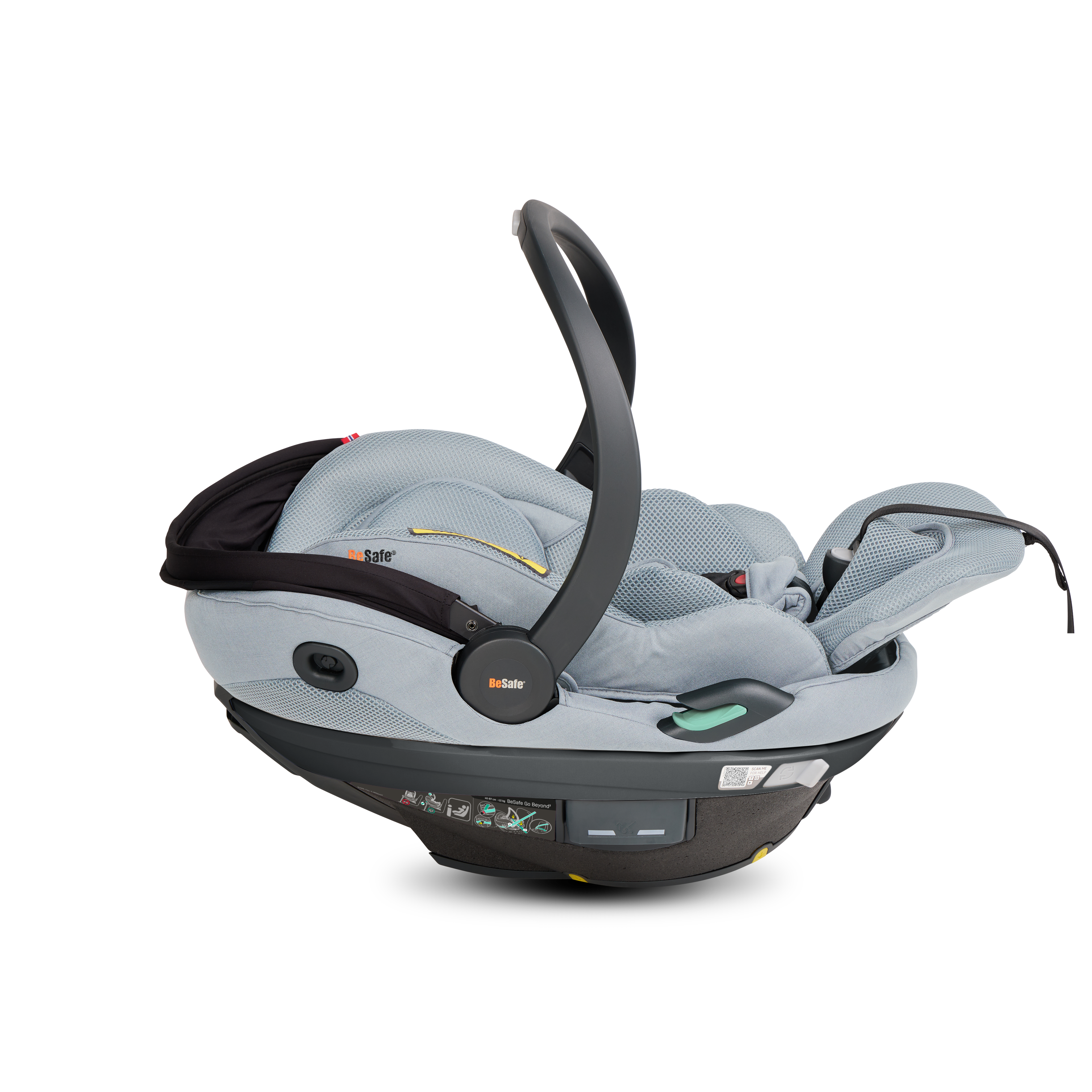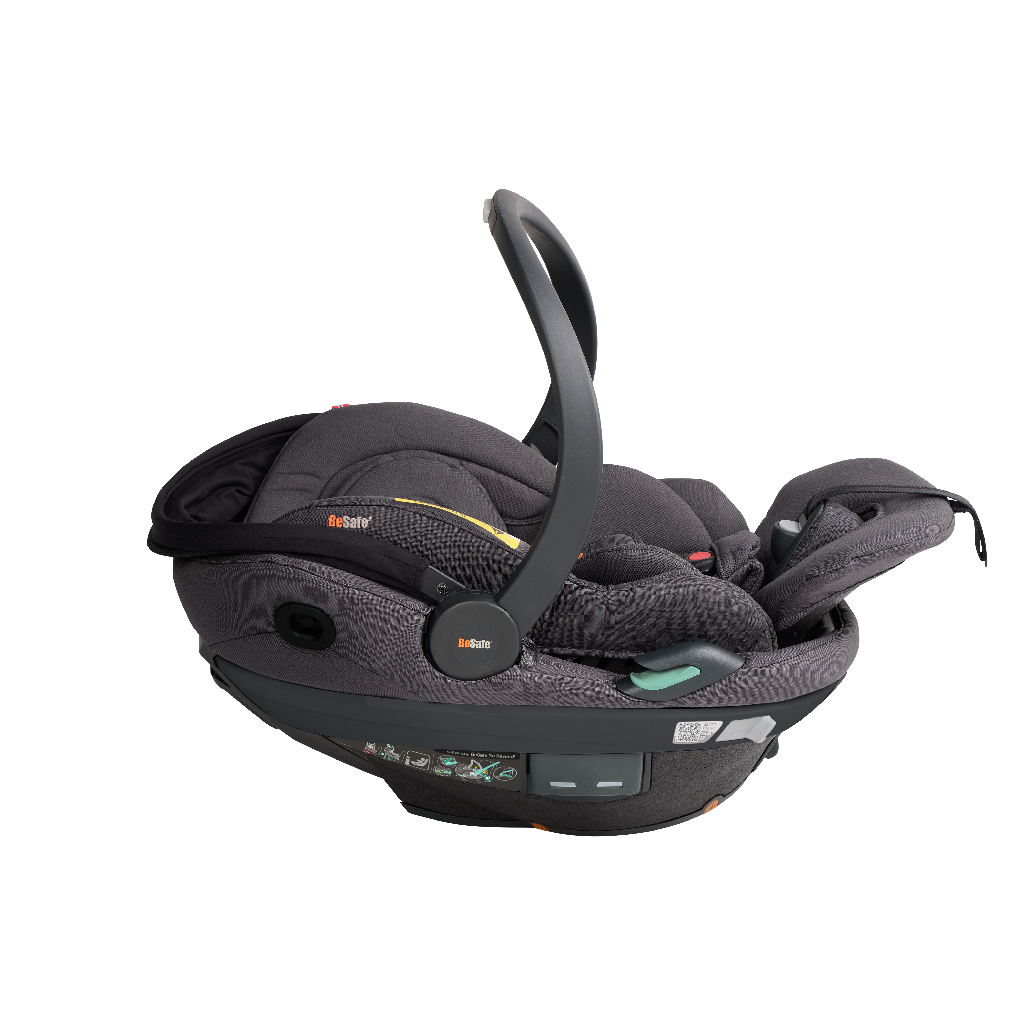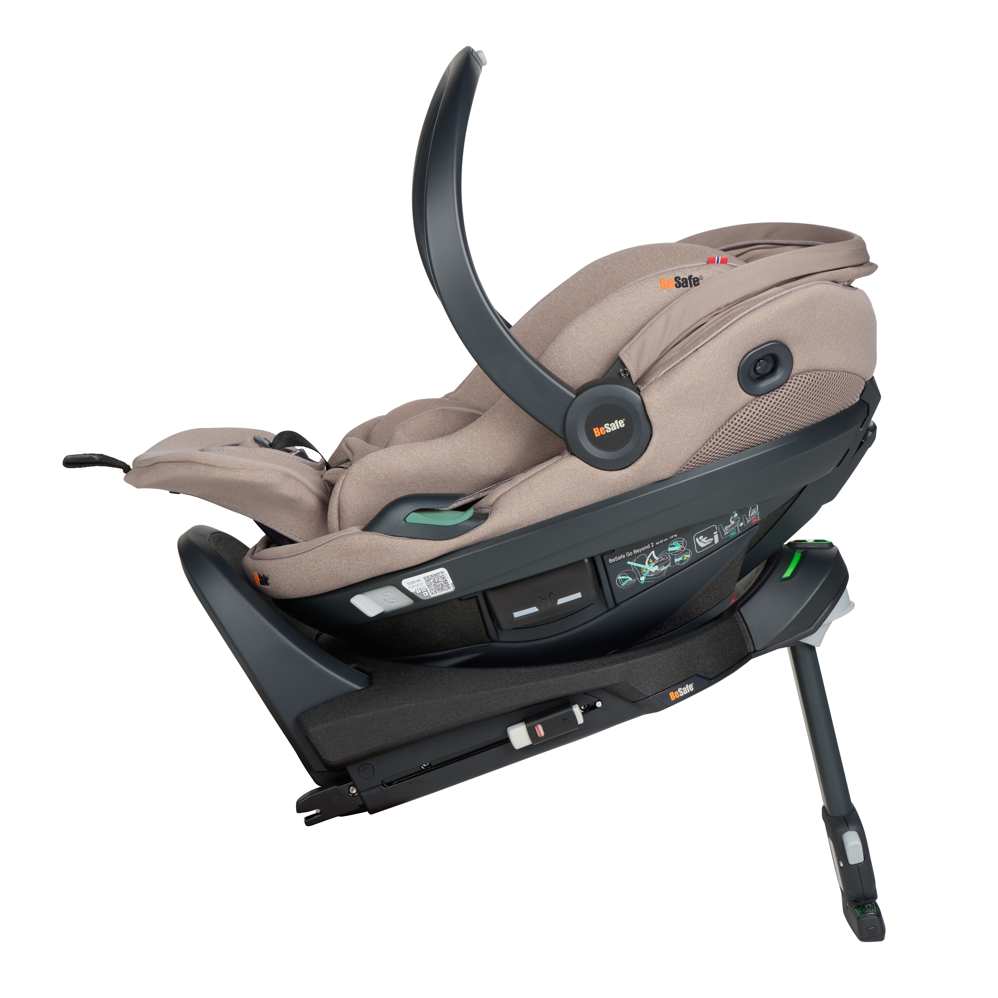 BeSafe Go Beyond² is the latest infant seat designed for safety, flexibility and comfort. Experience a unique safe sleep function that allows your baby to lie flat during car rides. With easy installation options - ISOfix or car belt - and innovative features like hands-free operations and a peekaboo sun canopy. The 5-point harness adds extra safety for real-life situations, complemented by the convenient rotation functionality for easy access to your baby. Certified for usage in airplane. This is an upgrade of the BeSafe Go Beyond , awarded with "Very Good" safety score in the ADAC autumn 2024 test. BeSafe GoBeyond + base is the only true lay-flat seat on the market with the highest possible safety score. Our unique Universal Level Technology™ ensures the same top-level safety performance across all vehicle types.