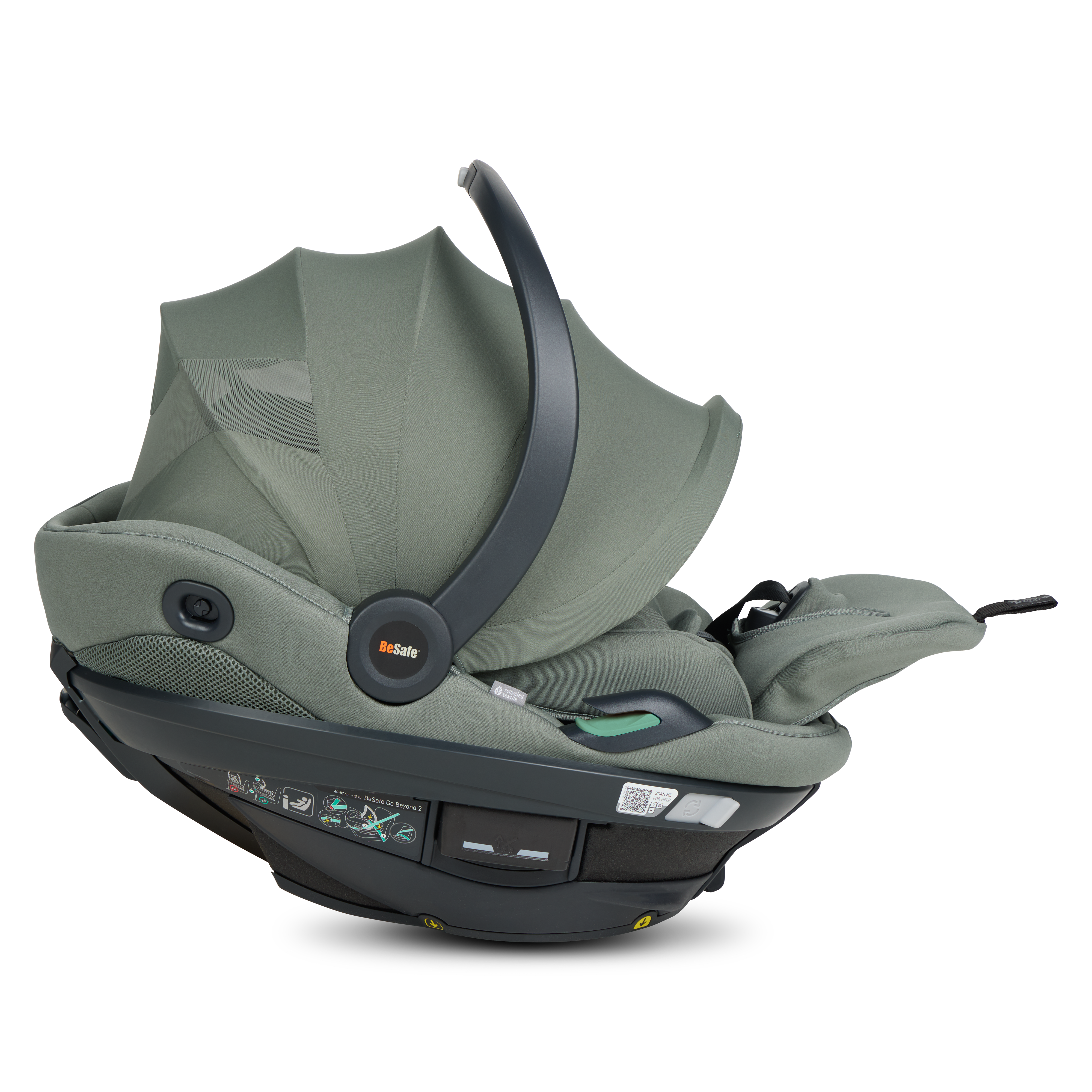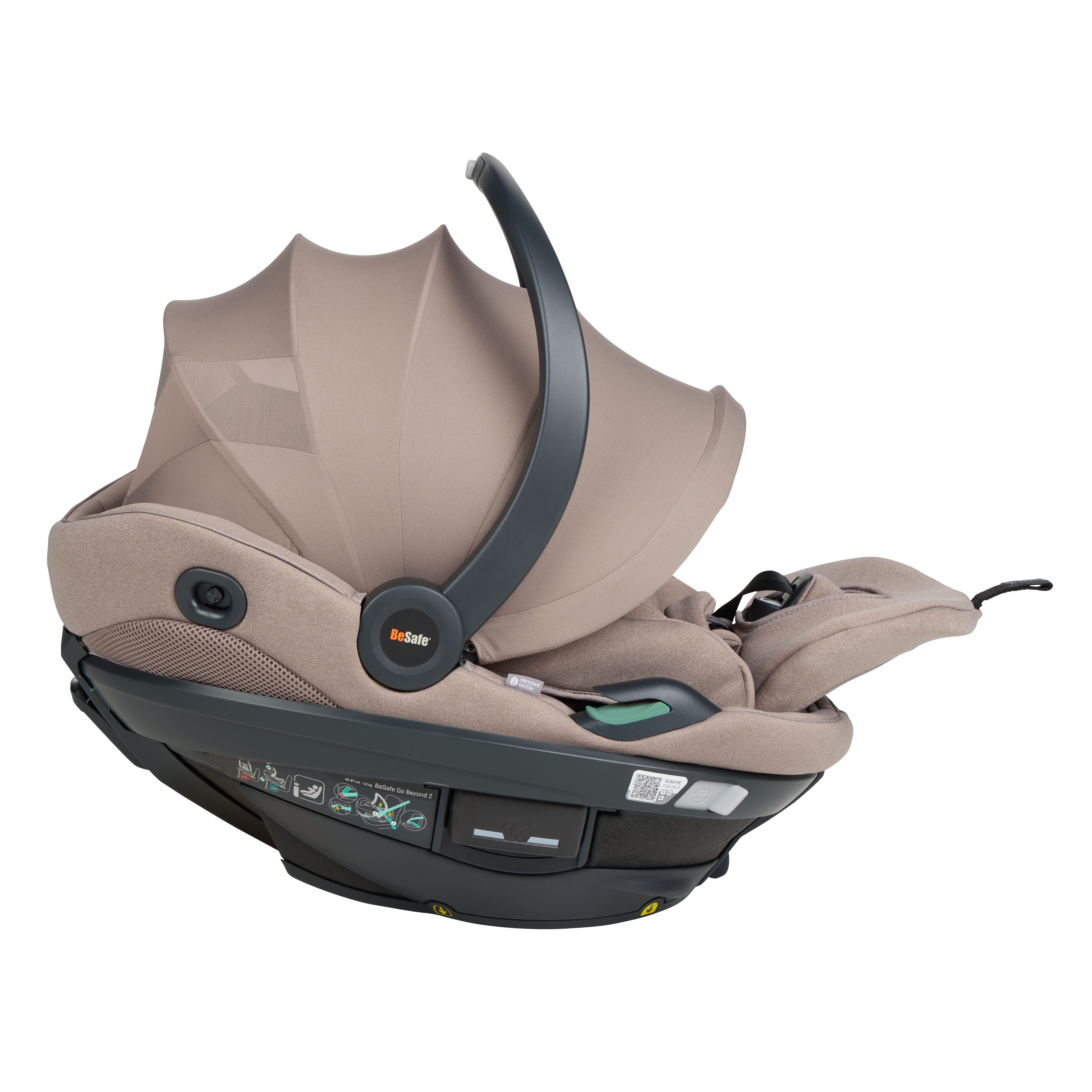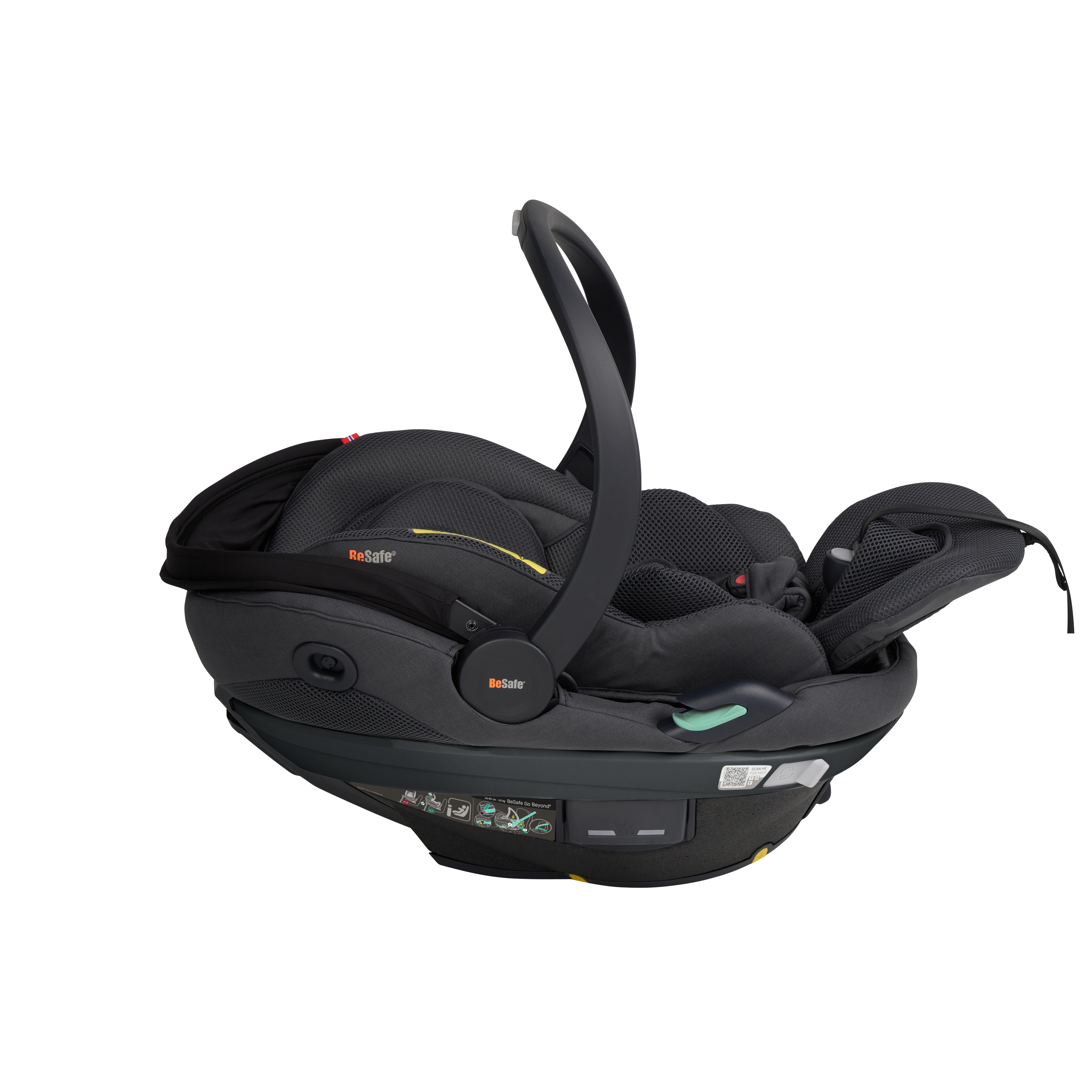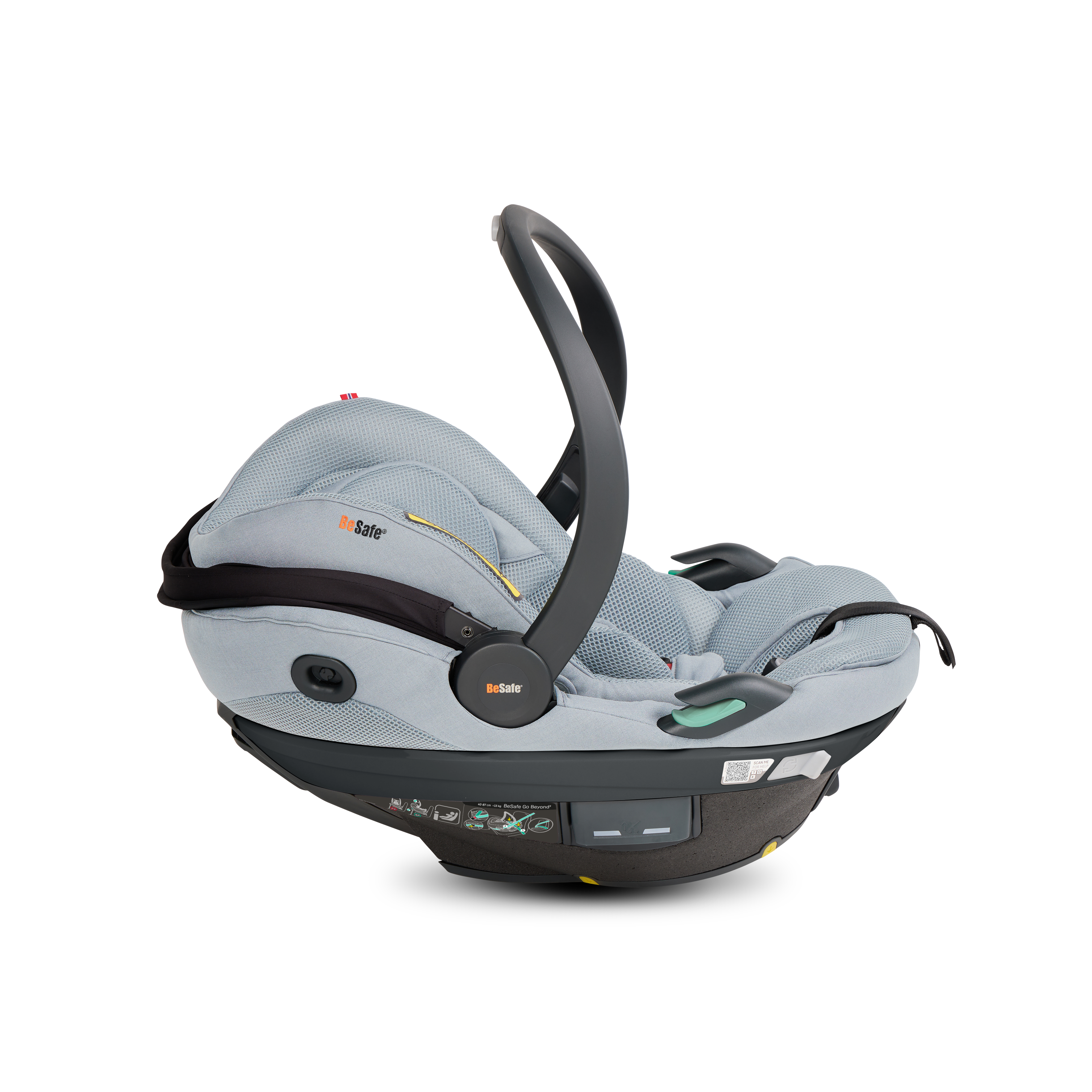 BeSafe Go Beyond² is the latest infant seat designed for safety, flexibility and comfort. Experience a unique safe sleep function that allows your baby to lie flat during car rides. With easy installation options - ISOfix or car belt - and innovative features like hands-free operations and a peekaboo sun canopy. The 5-point harness adds extra safety for real-life situations, complemented by the convenient rotation functionality for easy access to your baby. Certified for usage in airplane. This is an upgrade of the BeSafe Go Beyond , awarded with "Very Good" safety score in the ADAC autumn 2024 test. BeSafe GoBeyond + base is the only true lay-flat seat on the market with the highest possible safety score. Our unique Universal Level Technology™ ensures the same top-level safety performance across all vehicle types.