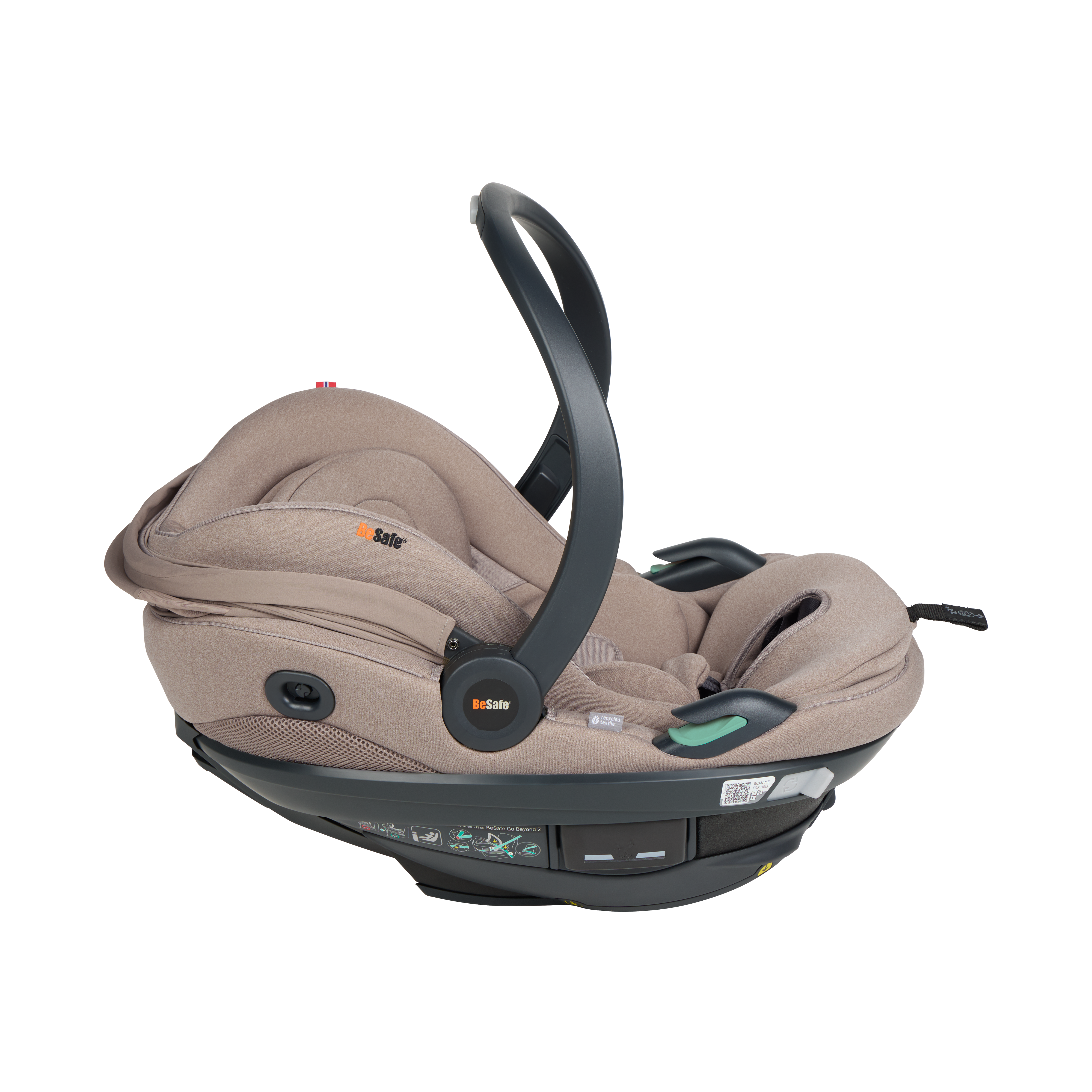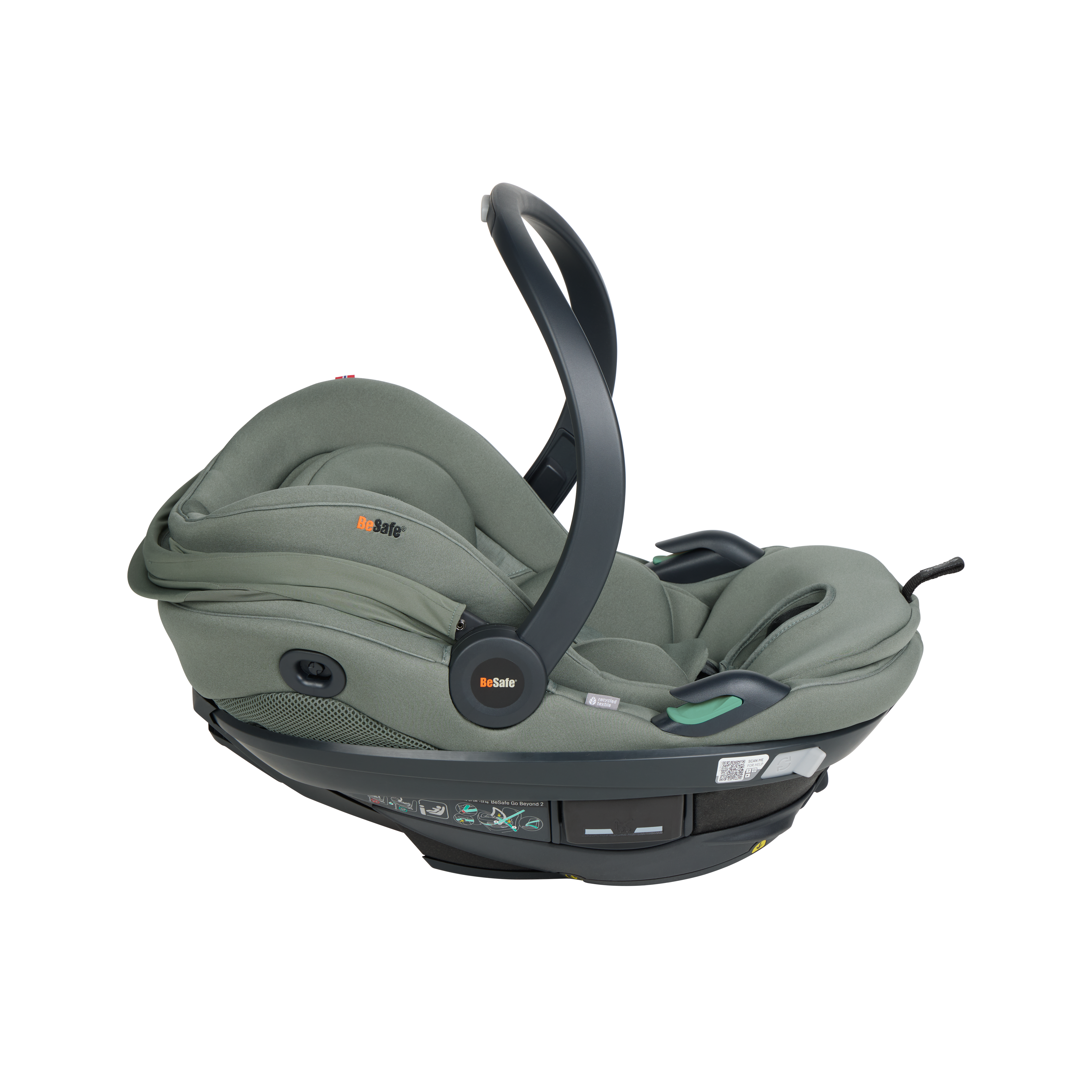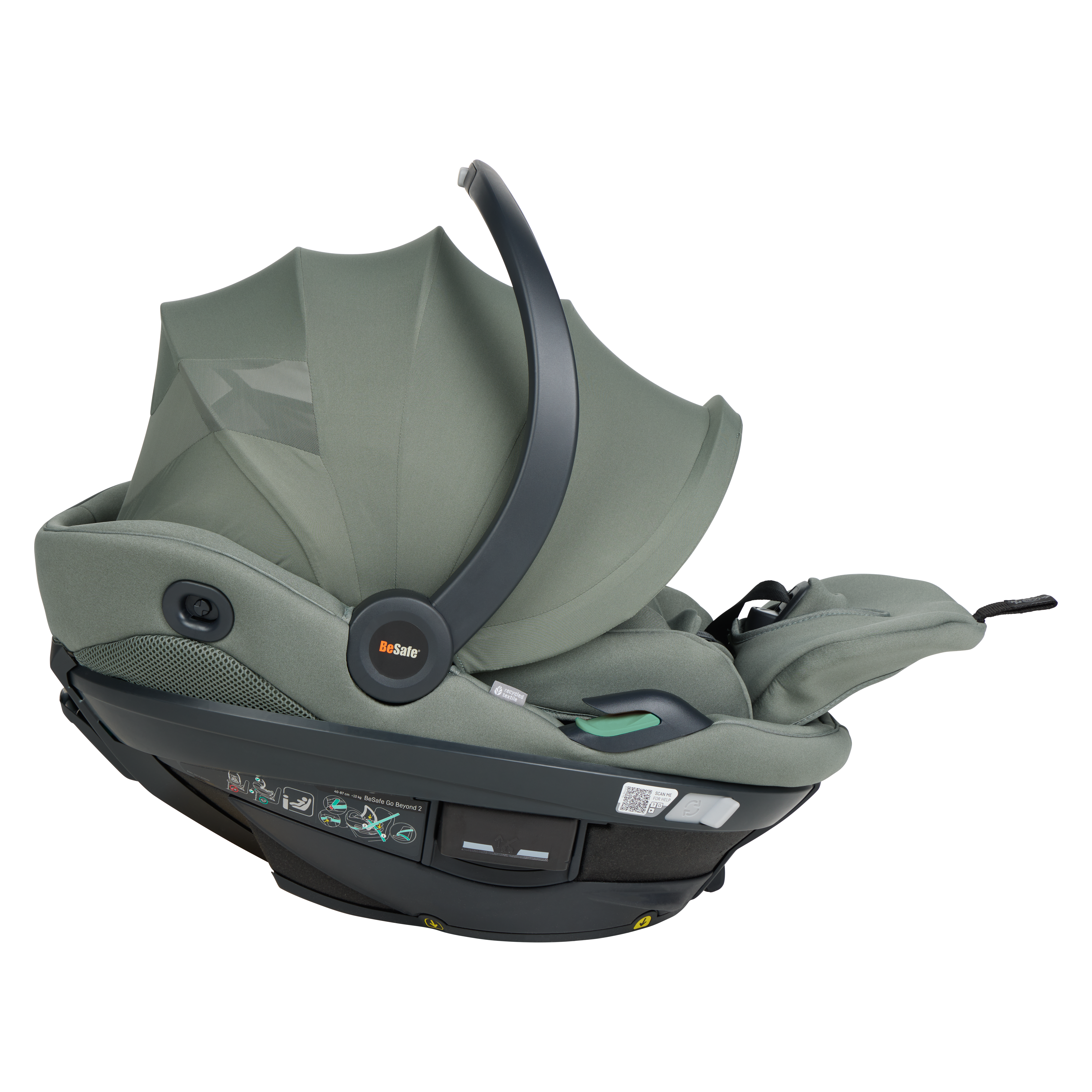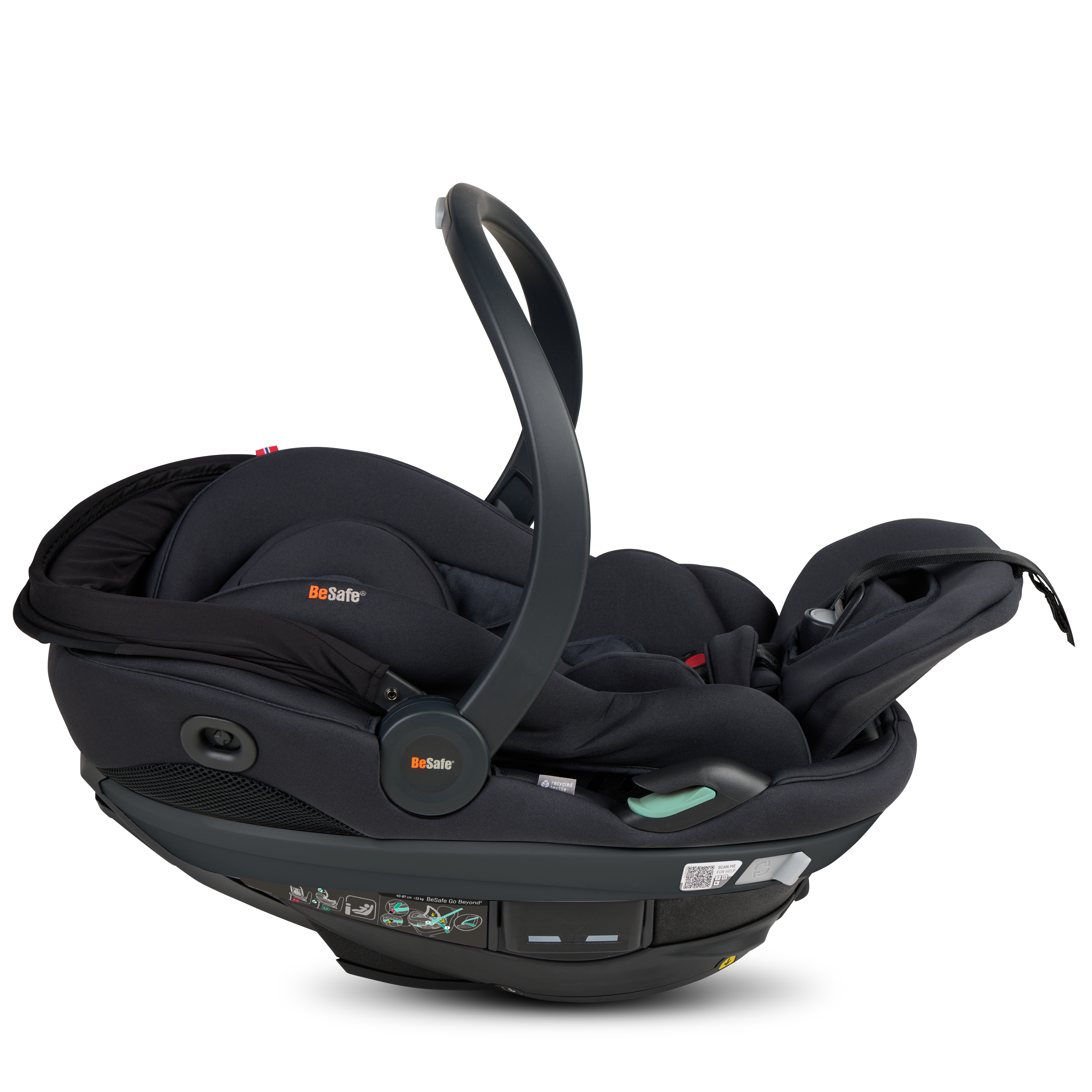 BeSafe Go Beyond² is the latest infant seat designed for safety, flexibility and comfort. Experience a unique safe sleep function that allows your baby to lie flat during car rides. With easy installation options - ISOfix or car belt - and innovative features like hands-free operations and a peekaboo sun canopy. The 5-point harness adds extra safety for real-life situations, complemented by the convenient rotation functionality for easy access to your baby. Certified for usage in airplane. This is an upgrade of the BeSafe Go Beyond , awarded with "Very Good" safety score in the ADAC autumn 2024 test. BeSafe GoBeyond + base is the only true lay-flat seat on the market with the highest possible safety score. Our unique Universal Level Technology™ ensures the same top-level safety performance across all vehicle types.