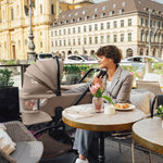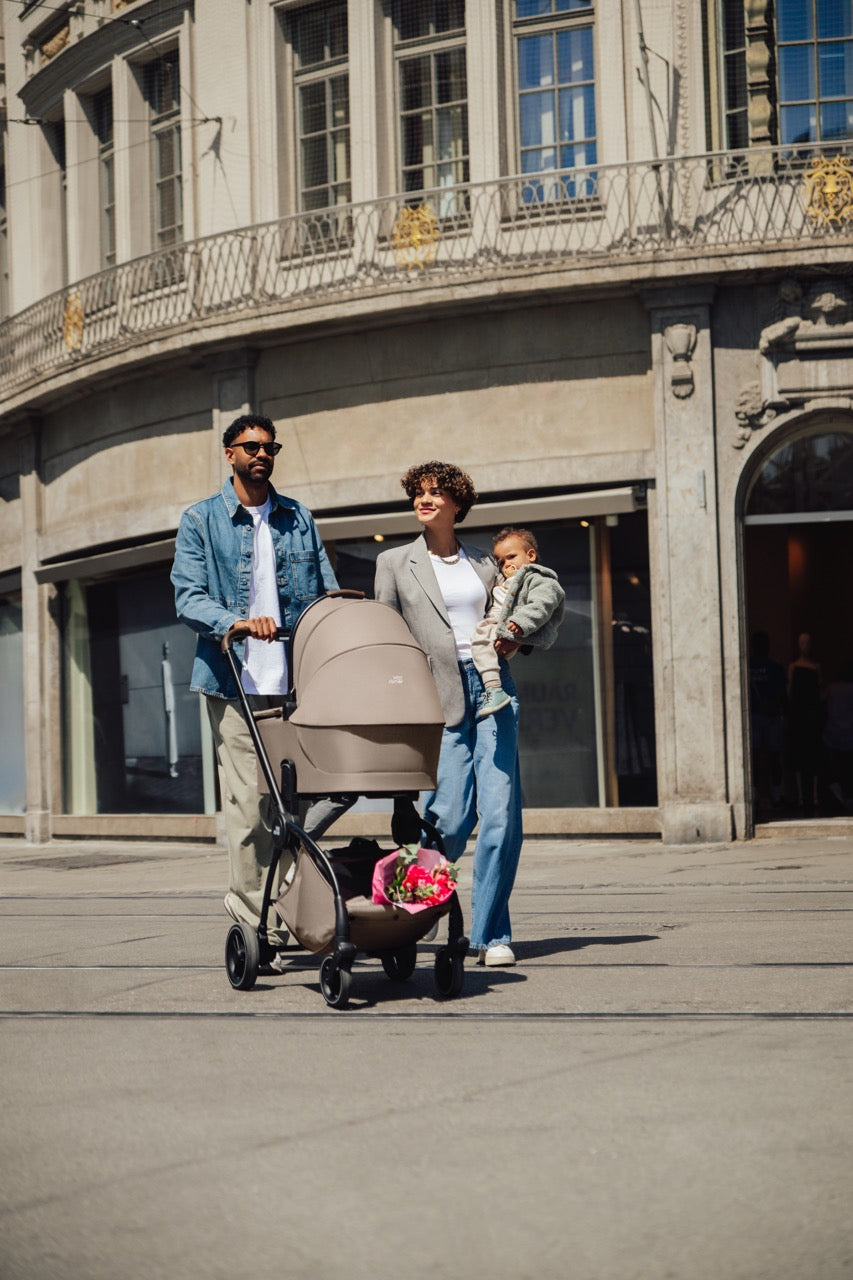 Stroll through narrow streets with our most compact travel system: at only 55cm wide and a super-light 7kg (10kg with the seat unit) the easy-handling RIO has your dynamic city lifestyle baked in. So head out to your local bistro, or visit friends across town. Need to save space? Use just one hand to fold the RIO super-small, then lift it easily using the carrying handle to tackle stairs or the metro.