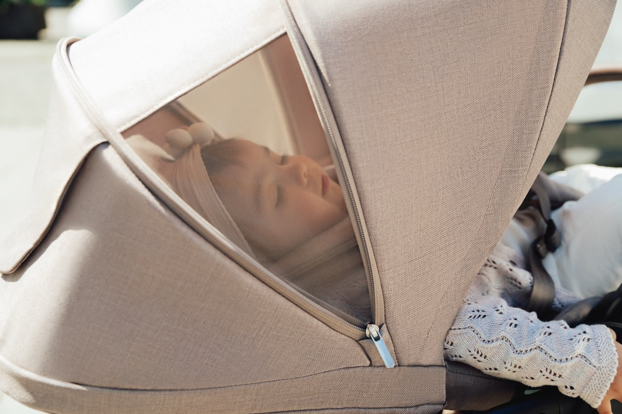 Whether parent or forward facing mode – time for a nap? Reposition the seat to full lie-flat, extend the hood and open the ventilation windows